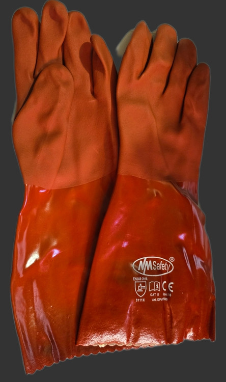 دستکش ضد اسید NM safetyاکتی فرش یکی از محبوترین و پرطرفدارترین محصولات شرکت NM می باشد. این دستکش به دلیل تولید شدن از پی وی سی ، در برابر نفوذ و خوردگی ناشی از کار با اسیدها مقاوم می باشد و بدین جهت دستکش ضد اسید نامیده می شود. طول این محصول حدود 40 سانتیمتر بوده و تقریبا تا آرنج یک فرد بالغ را پوشش می دهد.