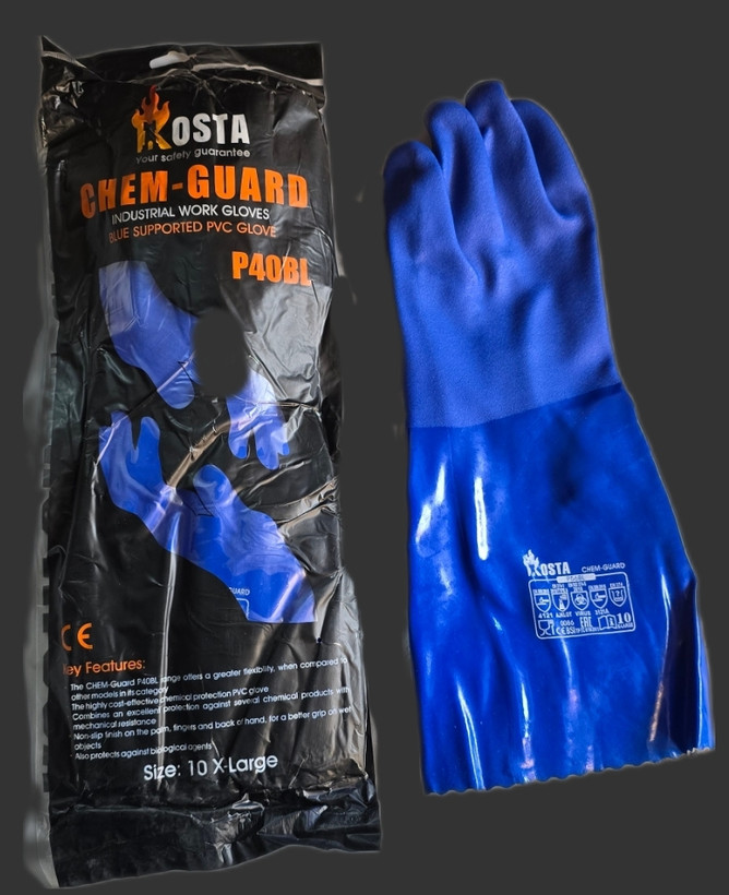 روکش به کار رفته در این محصول از جنس PVC ساخته شده است . این دستکش در برابر ماده های شیمیایی بسیار مقاومت بالایی دارد . همچنین لایه داخلی که درون دستکش تعبیه شده است از جنس پنبه می باشد .